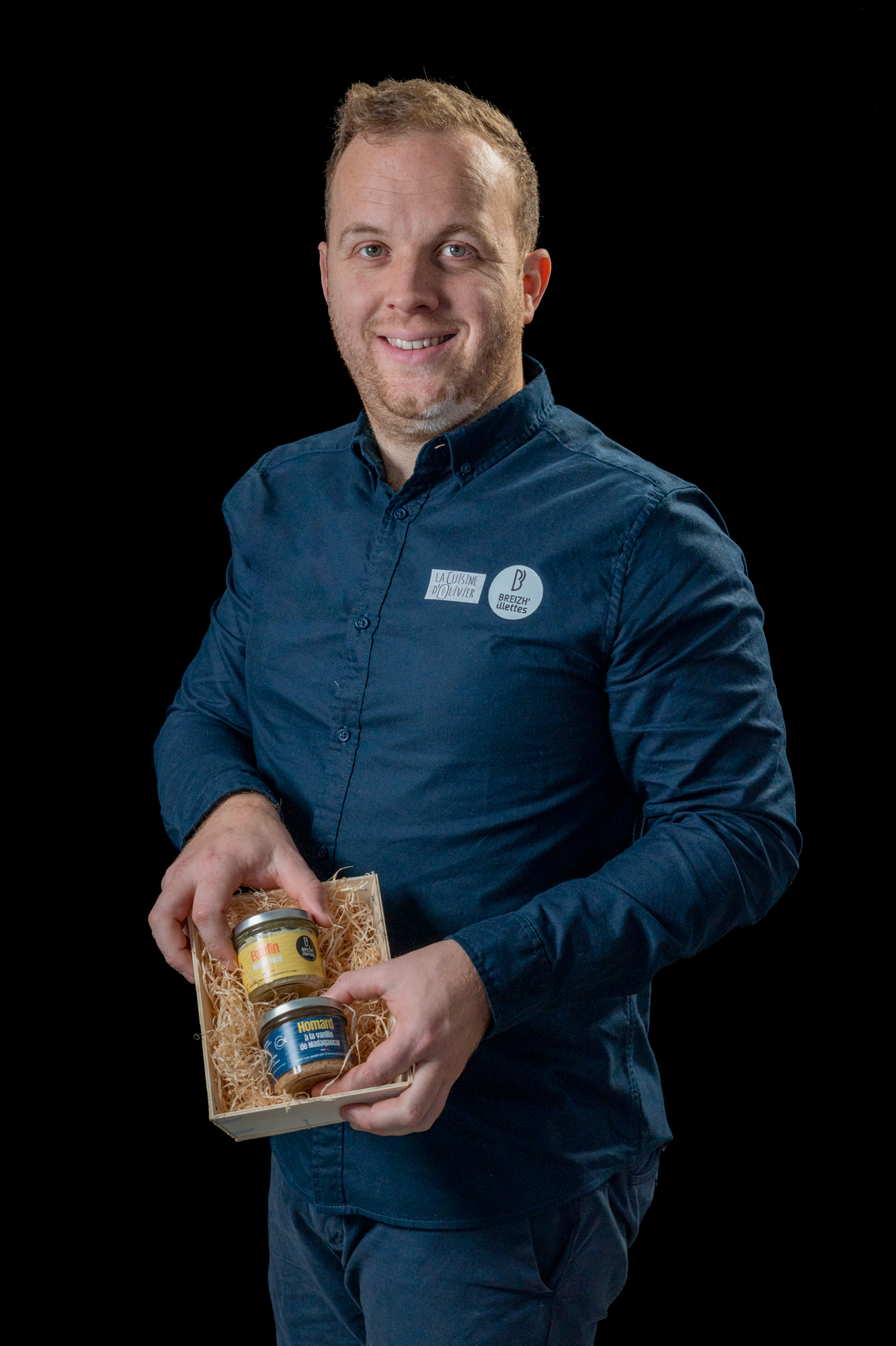 Ancien salarié de la Conserverie du Trégor, Sylvain découvre l’univers de la conserverie après avoir voulu valoriser les surplus de production d’un ami maraîcher bio. Formé en Bretagne auprès de restaurateurs, de la Chambre des Métiers et de divers acteurs locaux, il rejoint ensuite les frères Goarin, fondateurs de la Conserverie du Trégor, pour y parfaire son savoir-faire. Après deux années de transmission, il reprend l’entreprise et poursuit l’aventure avec ses deux salariés.
